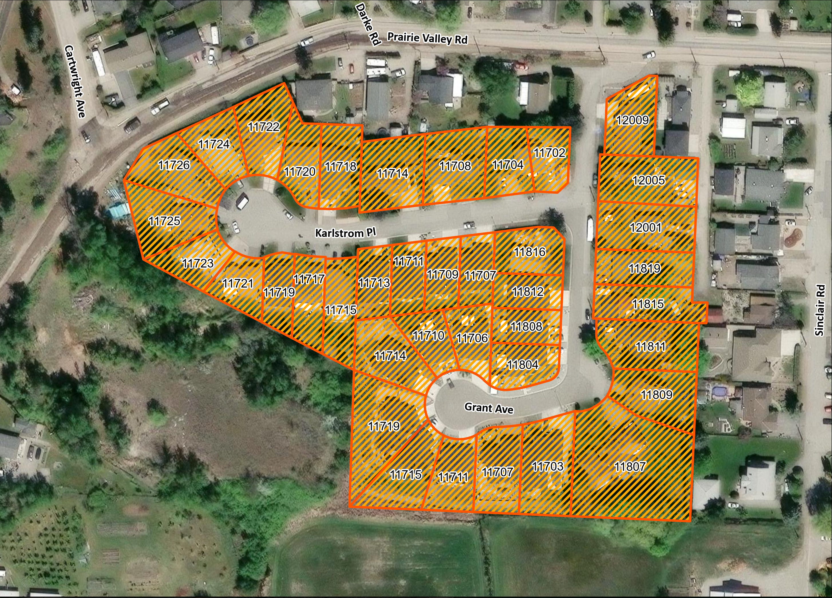 • Karlstrom Place: 11702, 11704, 11707, 11708, 11709, 11711, 11713, 11714, 11715, 11717, 11718, 11719, 11720, 11721, 11722, 11723, 11724, 11725, and 11726